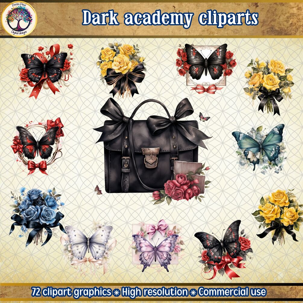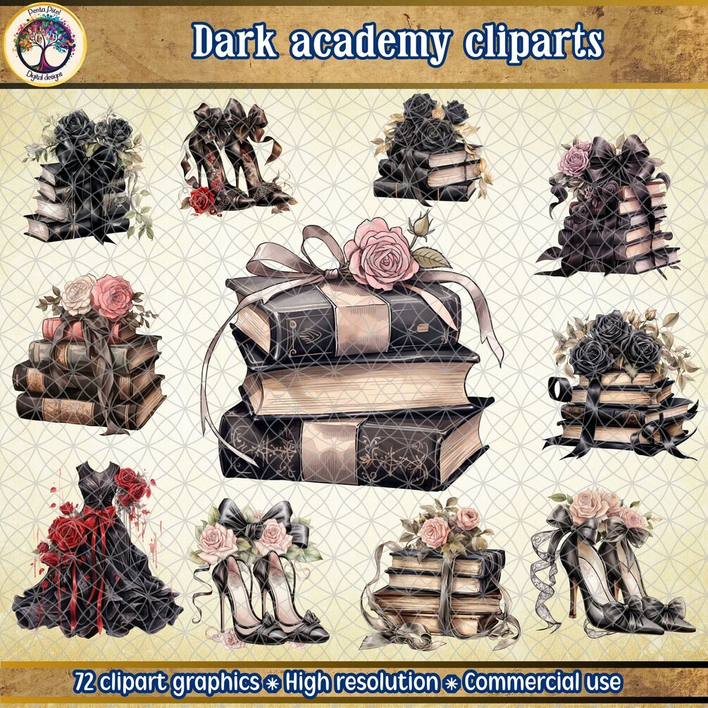 72 high-resolution clipart graphics that invoke the spirit of gothic academia. High quality PNG files