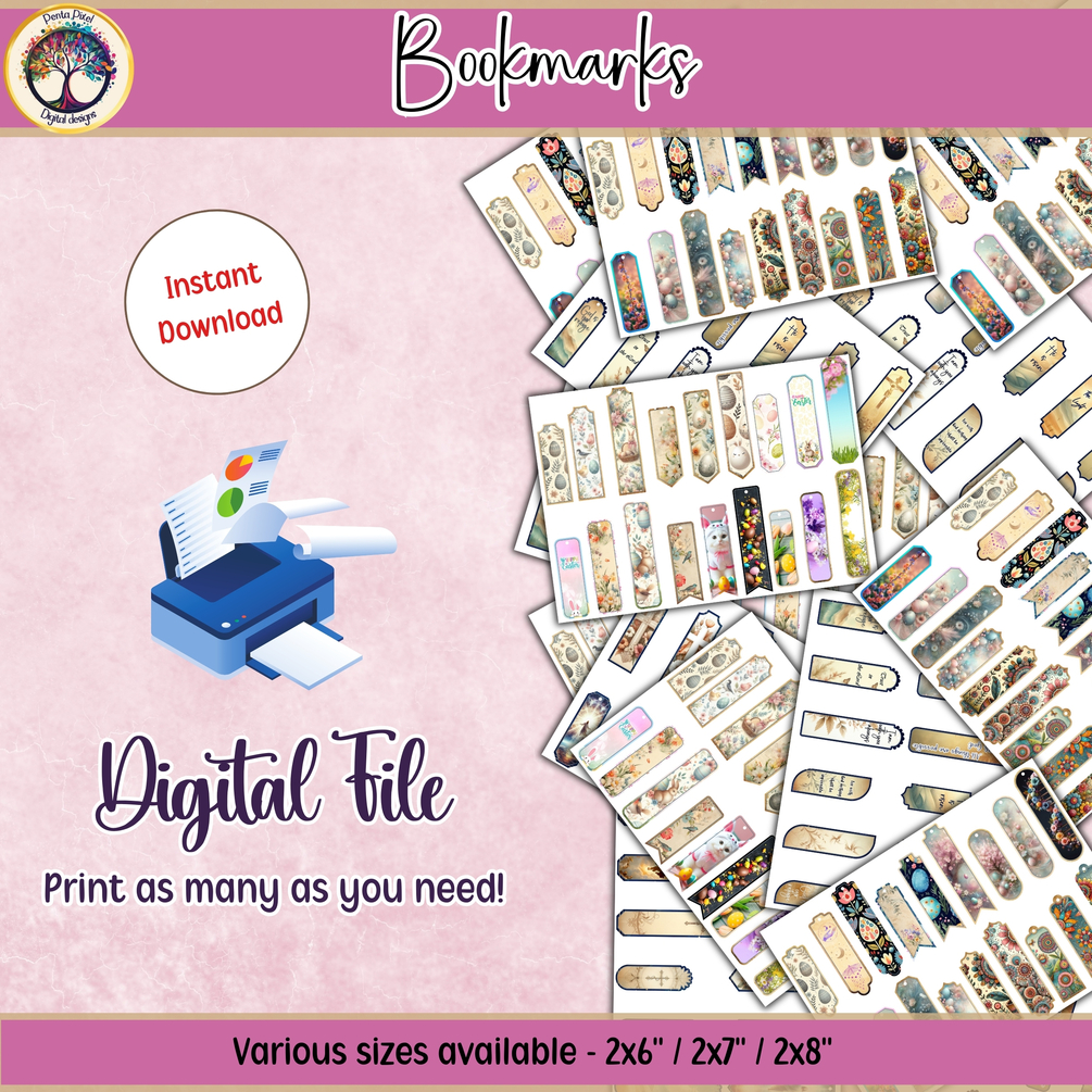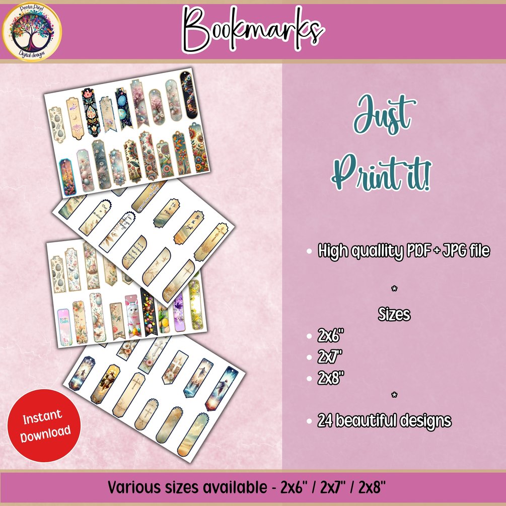 24 digital bookmarks with unique designs.High-resolution PDF and JPG files for clear, crisp images.